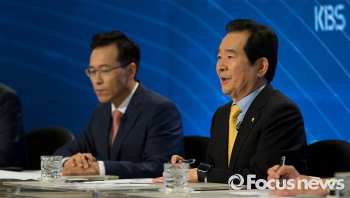 (서울=포커스뉴스) 정세균(오른쪽) 국회의장이 20일 오전 서울 종로구 세종문화회관에서 열린 한국방송기자클럽 초청 토론회에 참석해 모두발언을 하고 있다.