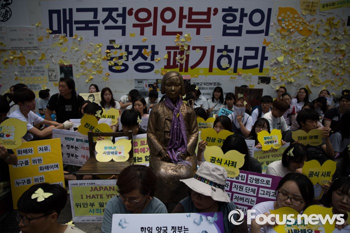 (서울=포커스뉴스) 20일 오후 서울 종로구 옛 일본대사관 앞에서 제1240차 일본군 위안부 문제해결을 위한 정기 수요집회가 열리고 있다.