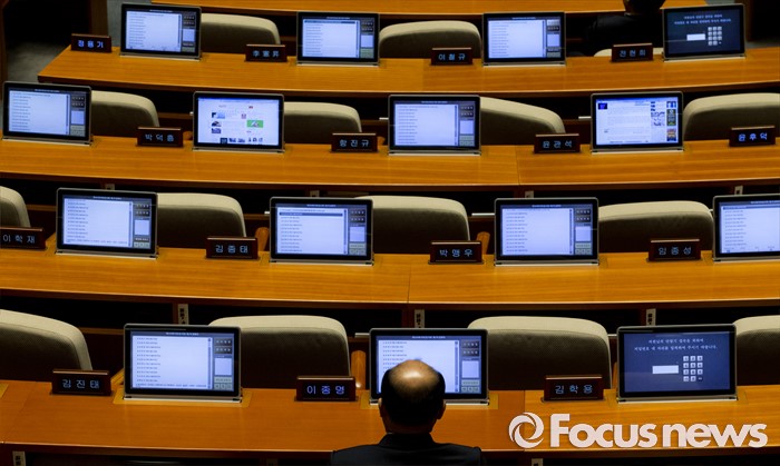 (서울=포커스뉴스) 20일 오전 서울 여의도 국회에서 열린 344회 국회(임시회) 2차 본회의, 사드(THAAD·고고도미사일방어체계) 배치에 대한 긴급현안질문에 대부분 의원들이 불참해 빈 자리가 보이고 있다.