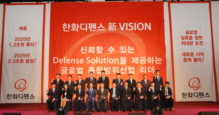 한화디펜스는 새로운 비전을 바탕으로 2020년까지 매출 1조2000억원을 돌파하고, 2025년에는 매출 2조3000원 규모의 글로벌 종합방위산업 리더로 성장한다는 미래상을 제시했다.