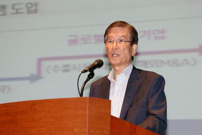 이동걸 회장은 "앞으로 중견기업 및 신성장산업 육성, 사업재편 M&A지원등 신규 수익원을 발굴할 계획"이라고 말했다.이동걸 산업은행 회장이 20일 서울 여의도 산업은행 본점에서 열린 '2016년 상반기 경영설명회'에서 발언을 하고 있다.<사진제공=산업은행>