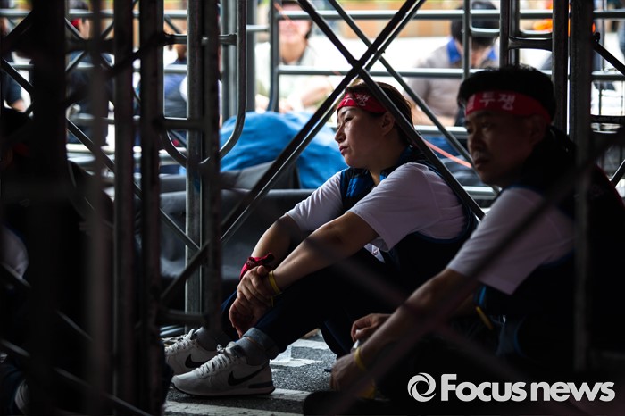 | △ 더위에 지친 민노총 조합원 |