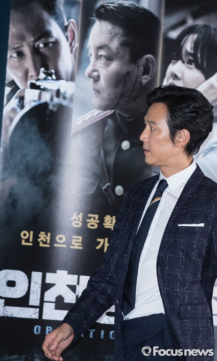 (서울=포커스뉴스) 20일 오후 서울 성동구 왕십리 CGV에서 열린 영화 '인천상륙작전' 언론시사회에 참석한 배우 이정재가 포토타임을 위해 이동하고 있다.