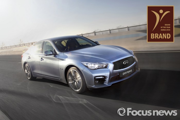 (서울=포커스뉴스) 인피니티 코리아의 스포츠 세단 Q50이 한국소비자브랜드위원회가 주최한 '2016 올해의 브랜드 대상'에서 3년 연속 '올해의 프리미엄 수입 세단'으로 선정됐다.