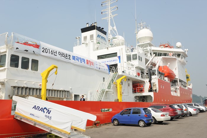 (인천=포커스뉴스) 김영석 해양수산부 장관이 참석한 가운데 20일 인천항 내항에서 열린 아라온호 북극항해 출항식이 열렸다. <사진제공=해양수산부>