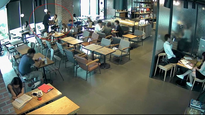 경찰은 "피해금 유통경로 등을 확인해 또 다른 공범 및 불법 환치기 업자에 대해서도 수사를 확대할 예정"이라고 밝혔다.피의자 A씨가 커피숍에서 피해자와 만나고 있는 모습(좌측 상단 빨간 동그라미)이 찍힌 CCTV 화면 <사진출처=종암경찰서>