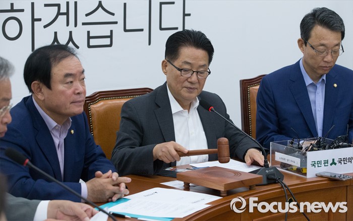 (서울=포커스뉴스) 21일 오전 서울 여의도 국회에서 열린 국민의당 원내정책회의에 참석한 박지원(가운데) 비대위원장이 개의 선언을 하고 있다.