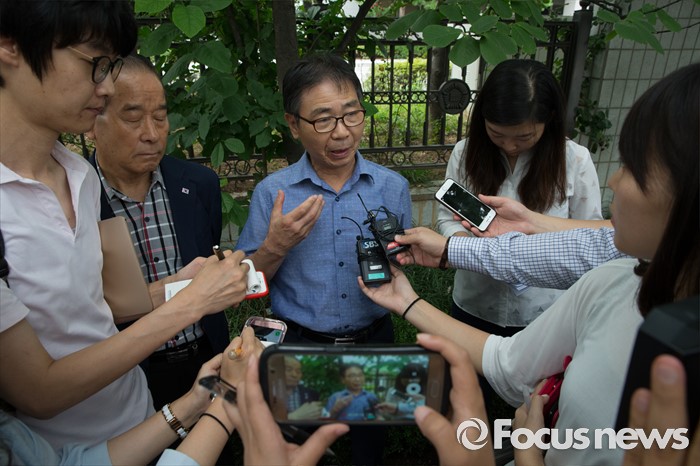 (서울=포커스뉴스) 이기열 원폭피해자가 21일 오전 서울 양천구 서울남부지방법원에서 열린 국가를 상대로 한 손해배상 청구 소송 선거공판이 끝난 뒤 취재진 질문에 답하고 있다. 서울남부지법 민사합의15부(부장판사 이광영)는 한국원폭피해자협회 서울지부 회원 230명이 국가를 상대로 낸 손해배상 청구 소송에서 원고 패소로 판결했다.