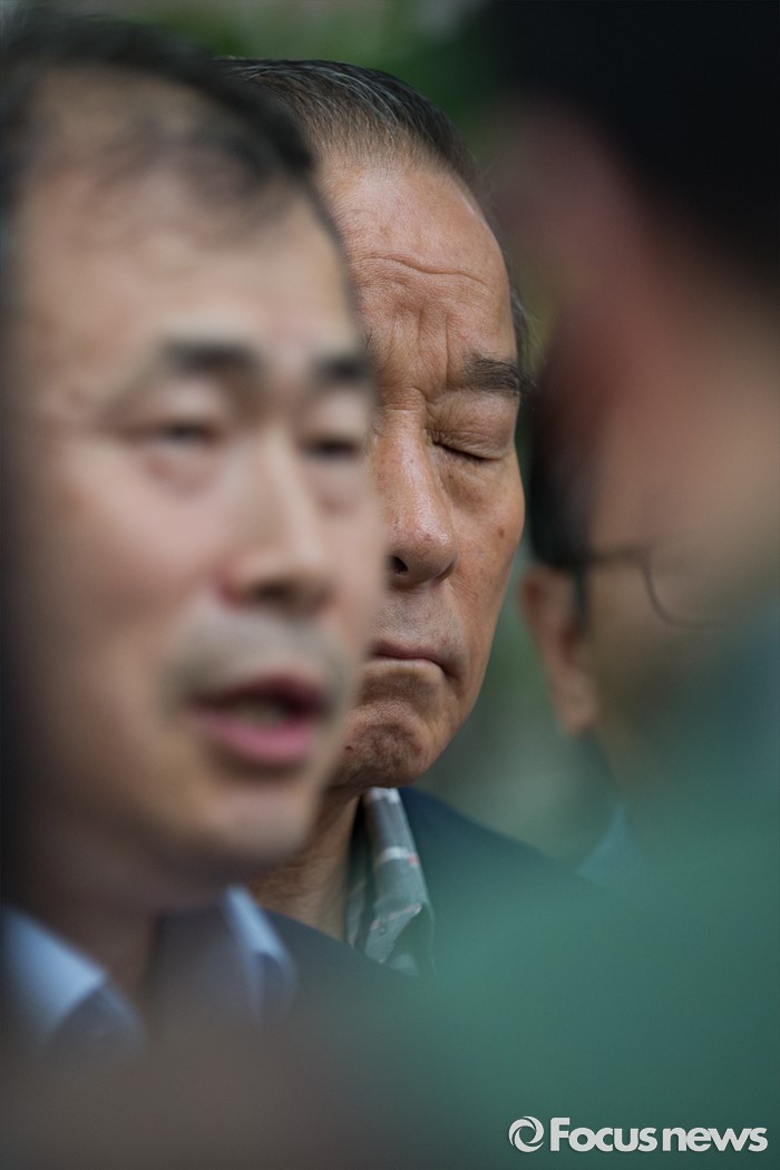 (서울=포커스뉴스) 원정부 한국원폭피해자협회 서울지부장이 21일 오전 서울 양천구 서울남부지방법원에서 열린 국가를 상대로 한 손해배상 청구 소송 선거공판이 끝난 뒤 기자회견 중 눈을 감고 있다. 서울남부지법 민사합의15부(부장판사 이광영)는 한국원폭피해자협회 서울지부 회원 230명이 국가를 상대로 낸 손해배상 청구 소송에서 원고 패소로 판결했다.