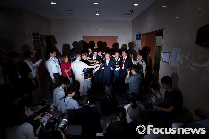 (서울=포커스뉴스) 이주영 새누리당 의원이 21일 오전 서울 여의도 국회에서 8.9 전당대회 당대표 출마 선언 기자회견을 마친 뒤 취재진 질문에 답하고 있다.