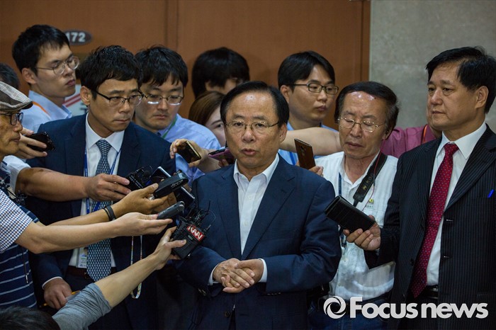 (서울=포커스뉴스) 이주영 새누리당 의원이 21일 오전 서울 여의도 국회에서 8.9 전당대회 당대표 출마 선언 기자회견을 마친 뒤 취재진 질문에 답하고 있다.