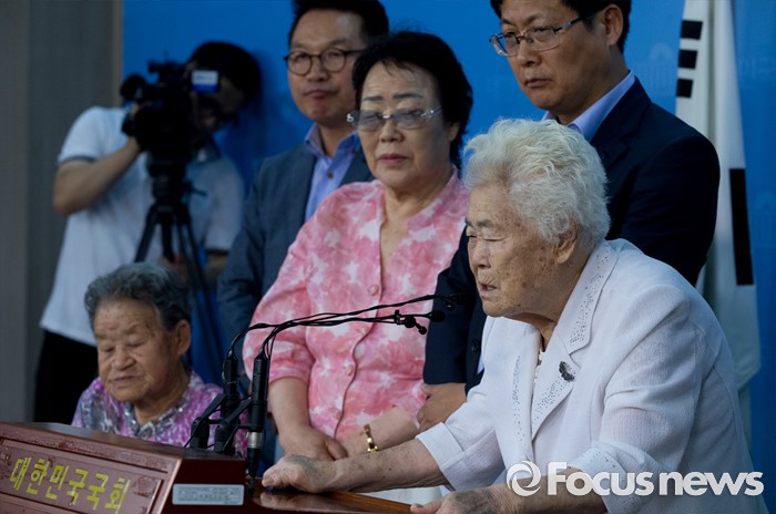 (서울=포커스뉴스) 21일 오전 서울 여의도 국회 정론관에서 열린 위안부 특별법 입법 청원 기자회견에 참석한 이옥선 할머니가 발언하고 있다.