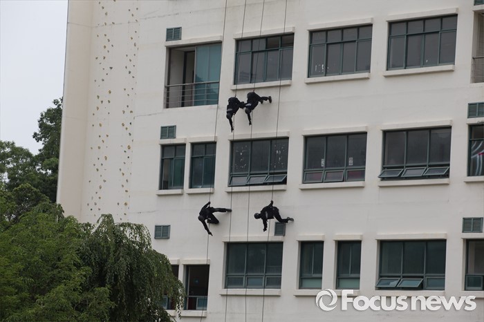 경찰 특공대의 멋진 레펠 하강