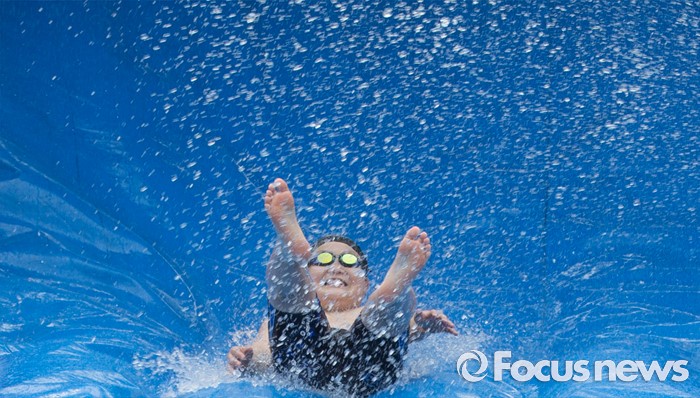 (서울=포커스뉴스) 21일 오후 서울 광진구 뚝섬 한강공원 수영장을 찾은 한 어린이가 물놀이를 즐기고 있다.