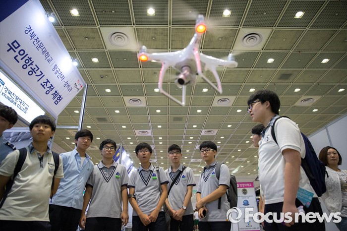 국토부는 “이번 연구의 핵심인 3차원 격자망 기반 드론길의 개념은 해외에서도 아직 아이디어 단계인 개념으로 선제적 기술개발과 함께 조기에 실용화할 경우 도심지역에서의 상업용 드론 활성화에서는 경쟁국에 비해 우리나라가 한발 앞서 나갈 수 있게 된다”고 말했다.(서울=포커스뉴스) 14일 오후 서울 강남구 코엑스에서 열린 전문대학 엑스포에 참가한 학생들이 무인항공기 조정을 체험하고 있다. 2016.07.14 성동훈 기자