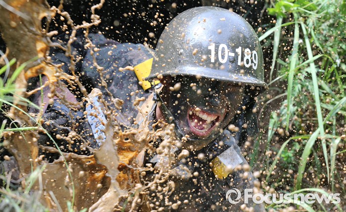 (논산=포커스뉴스) 폭염경보가 발령된 21일 충남 논산 연무읍 육군훈련소 각개전투종합훈련장에서 26교육연대 3교육대 훈련병이 훈련을 받고 있다.