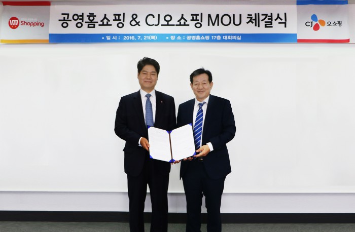 (서울=포커스뉴스) CJ오쇼핑과 공영홈쇼핑이 21일 전략적 제휴를 맺었다. 국내 중소기업 제품과 농축수산물의 판로 확대를 위해서다. 공영홈쇼핑은 중소기업 제품을 CJ오쇼핑에 추천하고, CJ오쇼핑은 이들 제품을 T커머스 채널 'CJ오쇼핑 플러스'와 자사의 인터넷 쇼핑몰 'CJ몰'에서 판매한다.