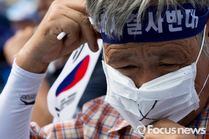(서울=포커스뉴스) 21일 오후 서울역 광장에서 사드 배치 반대를 요구하는 경북 성주군민 2천여 명이 대규모 상경집회를 하고 있다.