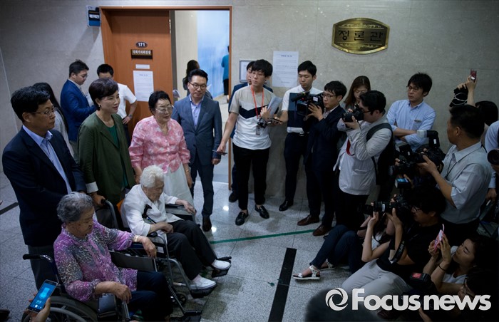 | △ 취재진 질문 답하는 위안부 피해 할머니들 |