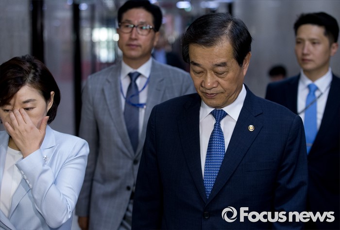 (서울=포커스뉴스) 21일 오후 서울 여의도 국회에서 황인무 국방부 차관이 정진석 새누리당 원내대표 등 지도부와 김항곤 성주군수 등 성주 사드배치 저지 투쟁위원회 관계자들의 면담에 배석하기 위해 원내대표실로 향하고 있다.