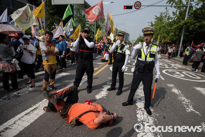 | △ 도로에 누워버린 집회 참가자 |