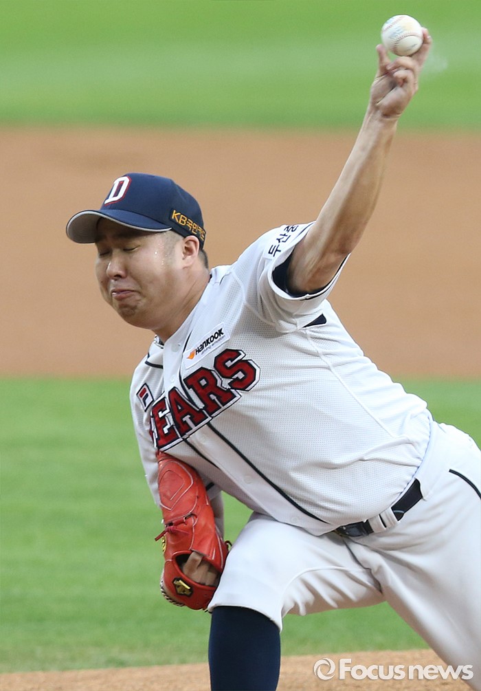 (서울=포커스뉴스) 21일 서울 잠실구장에서 열린 2016 프로야구 삼성-두산 경기에서 1회초 두산 선발투수 유희관이 투구하고 있다.