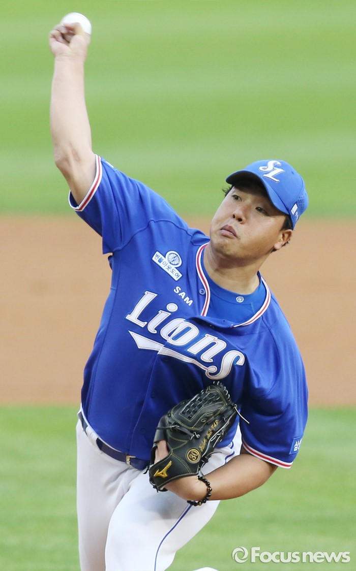(서울=포커스뉴스) 21일 서울 잠실구장에서 열린 2016 프로야구 삼성-두산 경기에서 1회말 삼성 선발투수 김기태가 투구하고 있다.