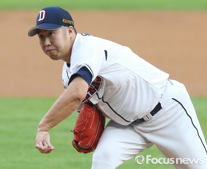 (서울=포커스뉴스) 21일 서울 잠실구장에서 열린 2016 프로야구 삼성-두산 경기에서 1회초 두산 선발투수 유희관이 투구하고 있다.