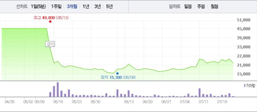 앞서 기업매각(M&A) 인수의향서 접수 마감 결과에서는 총 9개 업체가 인수의향서를 제출했다. 7개 업체가 본입찰에서 입찰서를 제출하지 않았다는 점이 주가를 끌어내리는 것으로 보인다. 삼부토건은 지난 2월 회생계획 인가 결정을 받은 뒤 지난 6월 매각관련 공고를 냈다.주가흐름<사진출처=네이버 캡쳐>