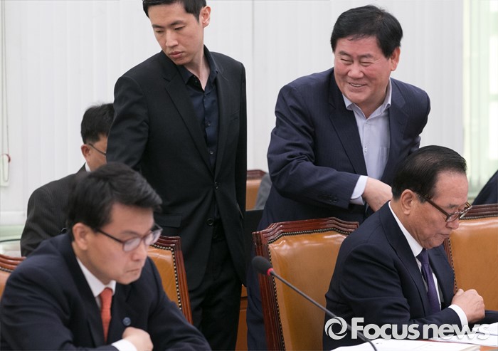 이군현 의원은 지난 2011년 7월부터 2015년 12월까지 보좌진 급여 중 2억 4400만원을 되돌려받는 방식으로 불법정치자금을 수수한 혐의(정치자금법을 위반)로 고발된 상태다.(서울=포커스뉴스) 27일 오전 서울 여의도 국회에서 열린 외교통일위원회 전체회의에 참석한 서청원(오른쪽부터), 최경환, 윤상현 새누리당 의원이 참석하고 있다. 2016.06.27 박동욱 기자