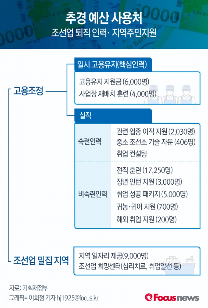 | △ [그래픽] 추경 예산 사용처(조선업 퇴진인력·지역주민지원) |