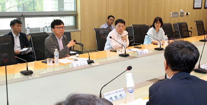 (대전-포커스뉴스) 김용환 원자력안전위원회 위원장이 22일 대전 유성구 한국원자력연구원을 방문, 안전규제 현안을 논의하고 있다. <사진제공=원자력안전위원회>