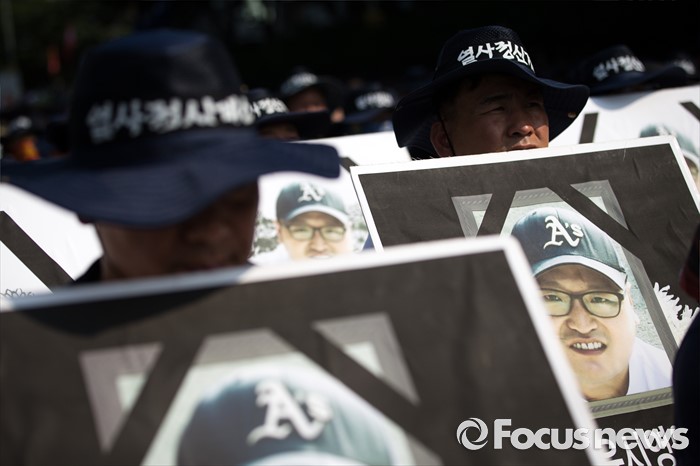 (서울=포커스뉴스) 정부의 일방적인 조선업 구조조정 중단과 현대차 그룹의 성실한 그룹사 공동교섭 참여, 정부의 노동개악 철회등을 내걸며 파업에 들어간 전국금속노조가 22일 오후 서울 서초구 현대자동차 본사 앞에서 금속노조 총파업 대회를 열고 있다.