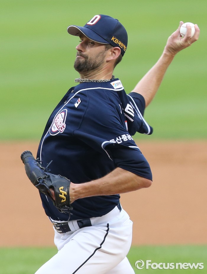 (서울=포커스뉴스) 22일 서울 잠실구장에서 열린 2016 프로야구 두산-LG 경기에서 1회말 두산 선발투수 니퍼트가 투구하고 있다.
