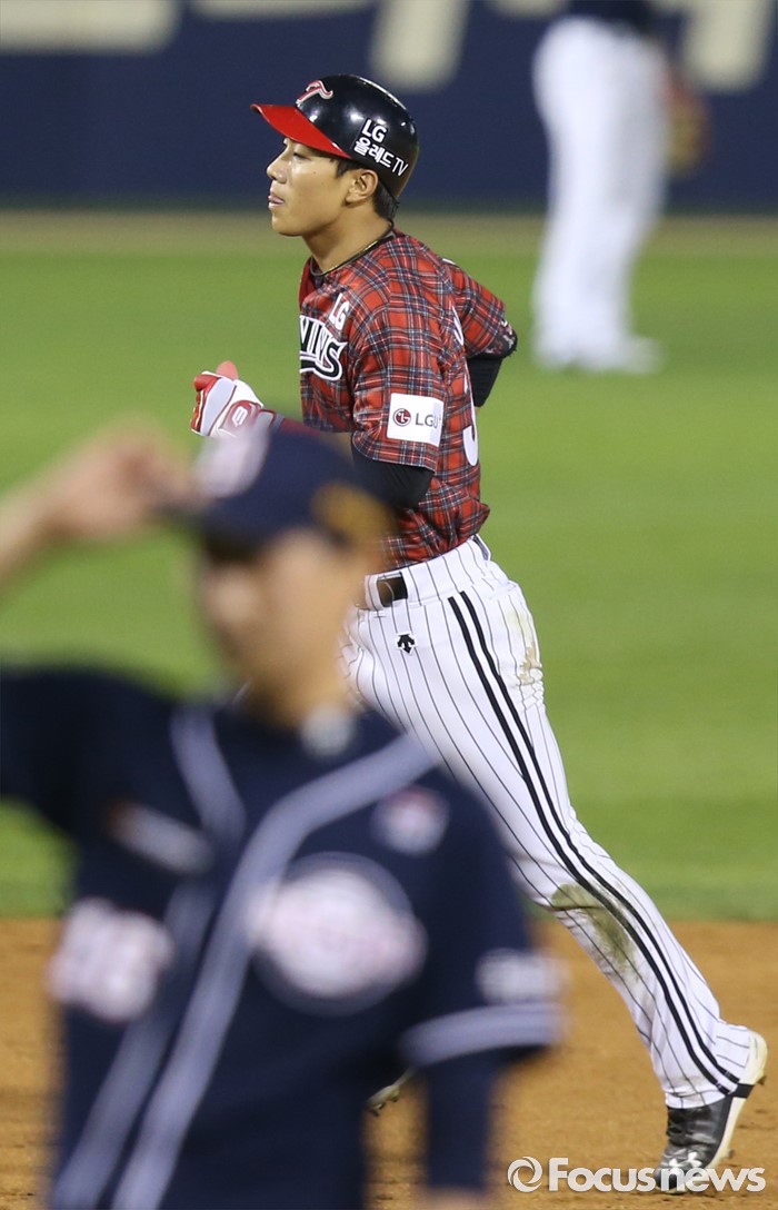(서울=포커스뉴스) 22일 서울 잠실구장에서 열린 2016 프로야구 두산-LG 경기 9회말 2사 1루에서 LG 이천웅이 우월 2점 홈런을 치고 베이스를 돌고 있다.