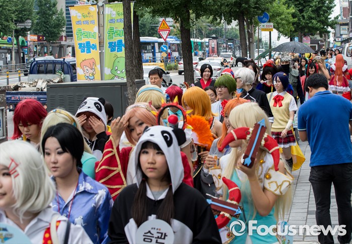 (서울=포커스뉴스) 23일 오전 서울 도봉구 쌍문역에서 코스프레를 한 학생들이 둘리뮤지엄 개관 1주년 기념행사 '둘리네 집들이' 퍼레이드를 하고 있다.