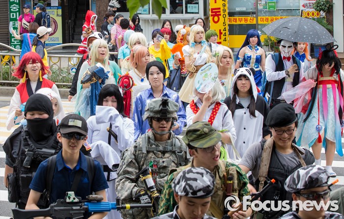 (서울=포커스뉴스) 23일 오전 서울 도봉구 쌍문역에서 코스프레를 한 학생들이 둘리뮤지엄 개관 1주년 기념행사 '둘리네 집들이' 퍼레이드를 하고 있다.