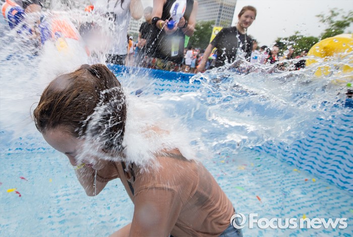 (서울=포커스뉴스) 23일 오후 서울 여의도 한강공원에서 열린 한강 물싸움 축제에서 참가자들이 시원한 물총싸움을 하며 더위를 식히고 있다.