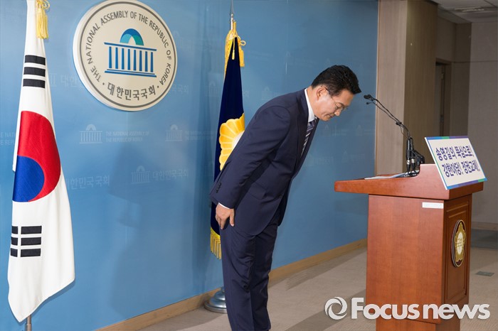 (서울=포커스뉴스) 송영길 더불어민주당 의원이 24일 오전 서울 여의도 국회 정론관에서 당대표 출마 기자회견을 마친 뒤 인사를 하고 있다.