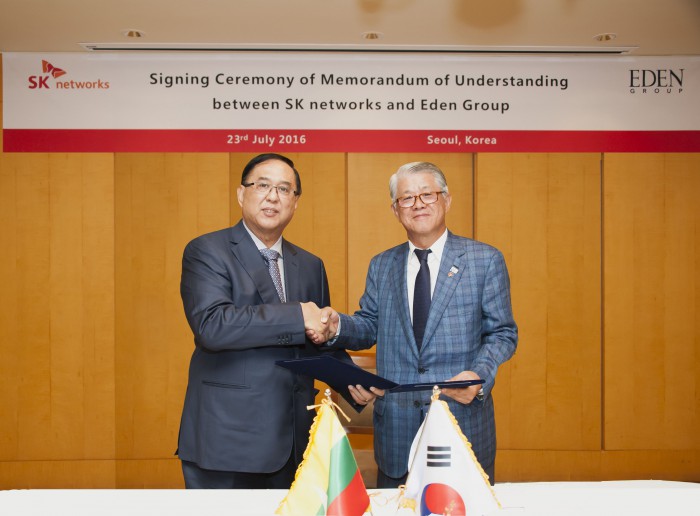 지난 23일 서울 광진구 워커힐 호텔에서 열린 협약식에는 최신원 SK네트웍스 회장, 문종훈 사장을 비롯해 미얀마 에덴그룹 칫 카인(Chit Khine) 회장과 예민아웅(Ye Min Aung) 부사장 등 양사 경영진 10여명이 참석했다.