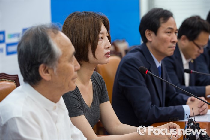(서울=포커스뉴스) 백남기 농민의 딸 백도라지 씨가 25일 오전 서울 여의도 국회에서 열린 '더불어민주당-백남기 농민 대책위원회 면담'에 참석해 발언 하고 있다.