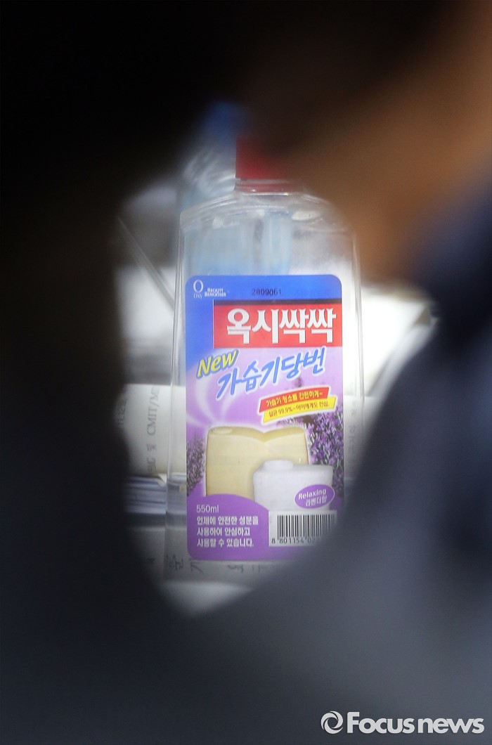 (세종=포커스뉴스) 25일 오전 세종시 정부세종청사 국회회의실에서 열린 환경부·고용노동부·국립환경과학원·안전보건공단에 대한 국회 가습기살균제 특조위 현장조사에서 옥시싹싹 제품이 보이고 있다.