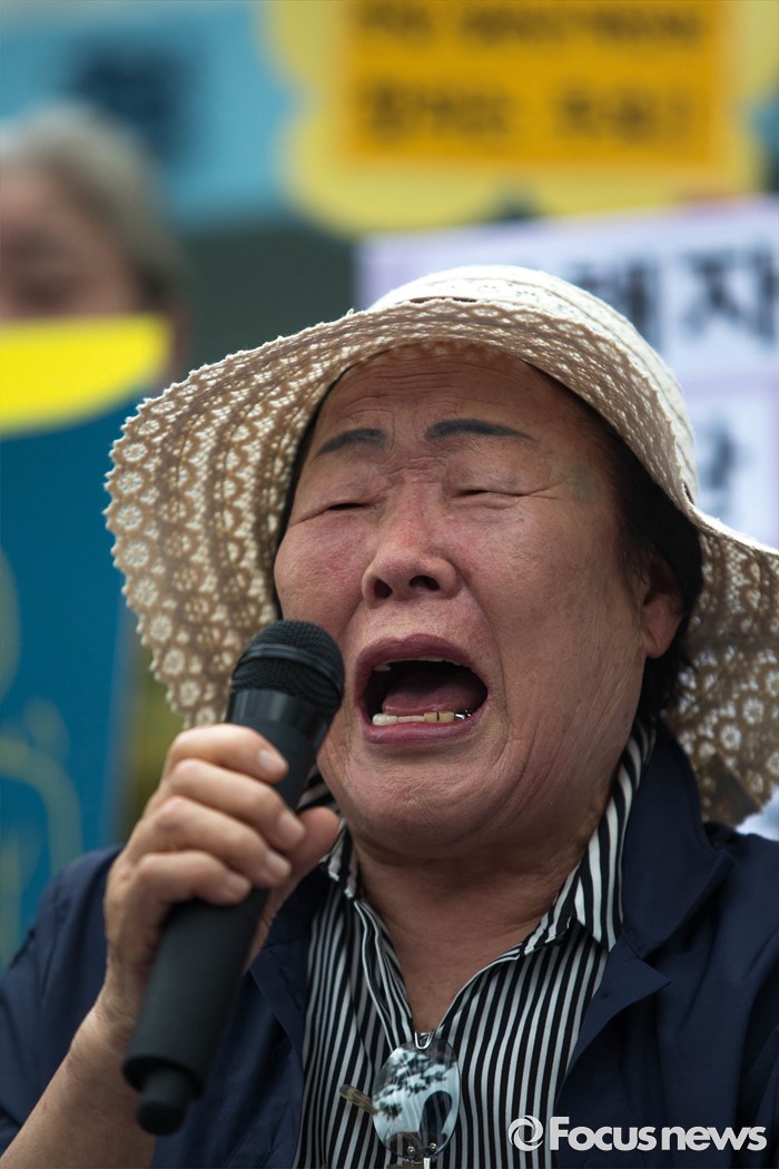 (서울=포커스뉴스) 25일 오전 서울 종로구 정부서울청사 앞에서 화해·치유재단 설립 강행하는 정부를 규탄하는 정대협(한국정신대문제대책협의회) 및 일본군 위안부 피해자 할머니들의 집회가 열리고 있다.