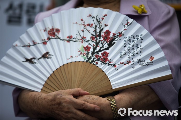 | △ 부채를 펼쳐 든 길원옥 할머니 |