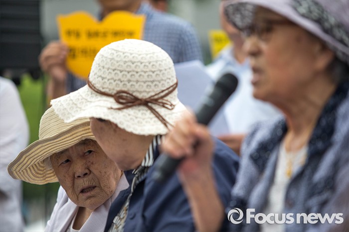 (서울=포커스뉴스) 25일 오전 서울 종로구 정부서울청사 앞에서 화해·치유재단 설립을 강행하는 정부를 규탄하는 정대협(한국정신대문제대책협의회) 및 일본군 위안부 피해자 할머니들의 집회가 열리고 있다.
