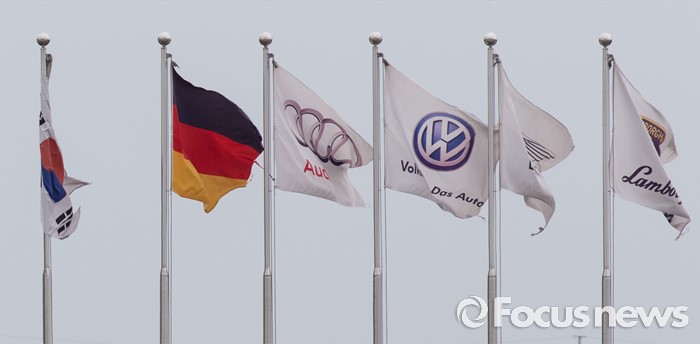 (평택=포커스뉴스) 폭스바겐 측이 34개 차종, 79개 모델에 대해 판매중단에 들어간 25일 오후 경기도 평택시 아우디폭스바겐 PDI(출고전 차량 점검)센터에 폭스바겐 계열사 깃발이 바람에 펄럭이고 있다.