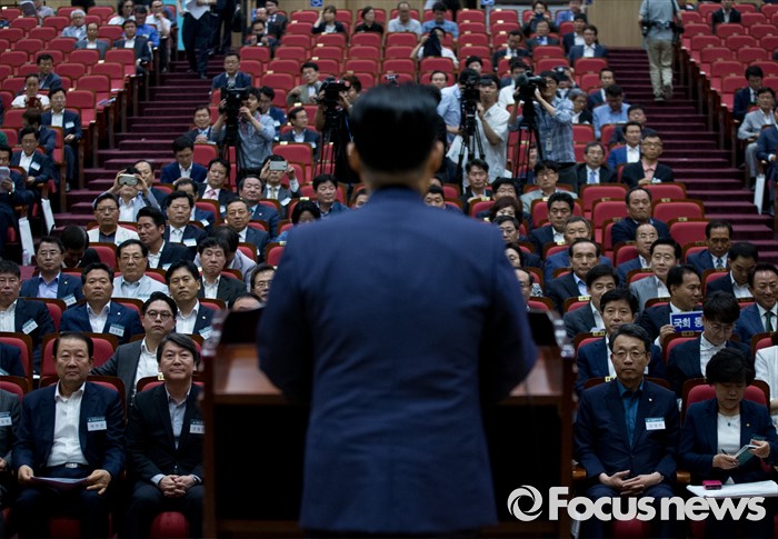 (서울=포커스뉴스) 25일 오후 서울 여의도 국회 의원회관에서 열린 국민의당 지역위원장 임명장 수여식 및 연석회의에 참석한 박지원 비상대책위원장이 인사말을 하고 있다.