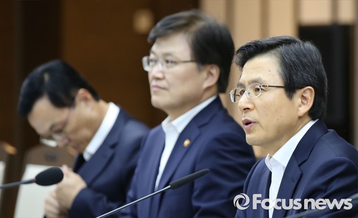 (세종=포커스뉴스) 황교안(오른쪽) 국무총리가 25일 오후 세종시 정부세종청사 국무총리실에서 열린 원자력진흥위원회에 참석해 회의를 주재하고 있다.