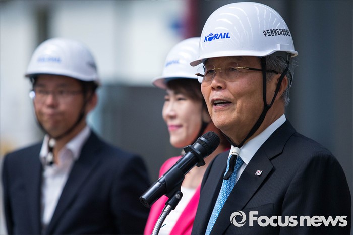 (고양=포커스뉴스) 김종인 더불어민주당 비대위 대표가 26일 오전 경기도 고양시에 위치한 수도권철도차량정비단을 방문, 근로자들에게 격려사를 하고 있다.