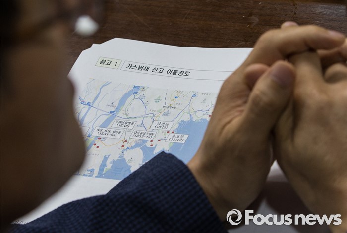 (서울=포커스뉴스) 26일 오전 정부서울청사에서 열린 가스 및 악취 발생 관계기관 안전점검회의에 참석한 한 관계자가 가스냄새 민원 이동경로가 표시된 지도를 살펴보고 있다.